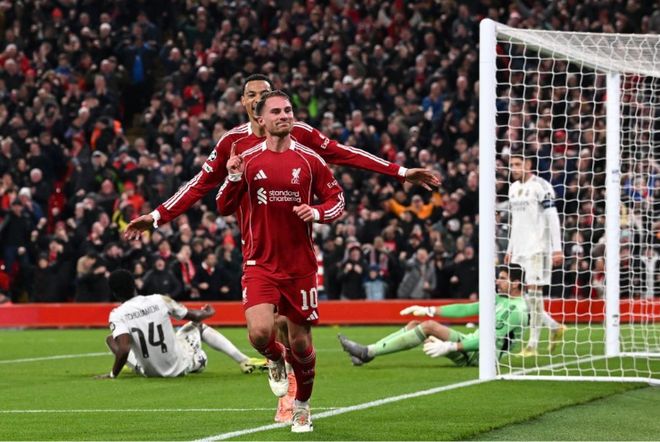 红军踢得无拘无束,毫无惧色,面对老对手他们以挑战者姿态出击。上周末刚在维拉公园喘过一口气,他们就把这股劲儿带回了欧洲赛场。甚至在比赛尚未开始时,现场气氛就已达到沸点,利物浦球迷对阿诺德的态度一目了然。利物浦虽未完全找回最佳状态,没有创造出接连不断的绝佳机会,但他们再次在混乱中蓬勃发展。斯洛特的弟子寸土不让——每一次对抗、每一次头球、每一次二点球,全收囊中。西甲领头羊只能跟着影子跑。索博斯洛伊满场飞,这名中场大脑以身作则;布拉德利则把维尼修斯锁进笼子,一战封神;维尔茨终于回到左边路,用脚下细节证明夏天的投资正在回本。上半场,因楚阿梅尼一次颇具争议的手球判罚,利物浦球迷对未获点球感到愤愤不平。然而,下半场一切都被抛诸脑后。索博斯洛伊一记美妙的任意球,被麦卡利斯特用头一顶,球势大力沉地越过库尔图瓦的十指关。