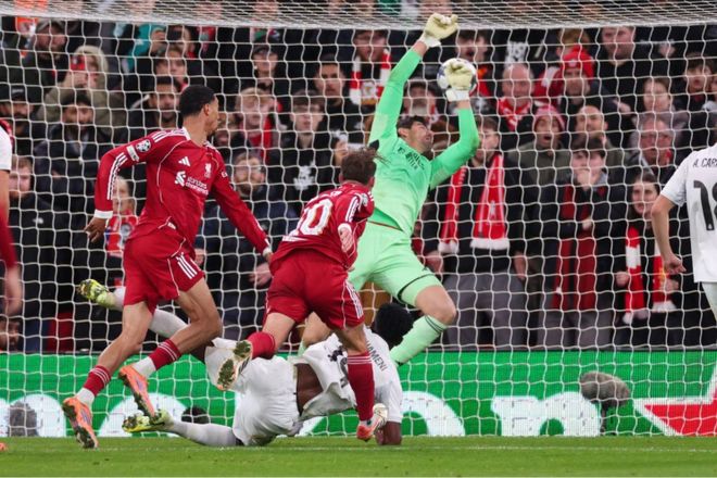 历史没重演,因为布拉德利把维尼修斯锁死,更因为领先后利物浦几乎零失误。这是一场自信、镇定且专注的表现,是他们本赛季最佳的一场。如果说战胜阿斯顿维拉是一场试探性的进步,那么如此稳妥地控制住世界上最强的球队之一,则是一次巨大的飞跃。安迪·罗伯逊的回归让防线更加稳固。中场的活力和拼抢回来了。维尔茨在左路表现出色。而且球队在所有阶段都表现出色。正如克洛普在感叹库尔图瓦的出色表现时所说:“我们踢那场比赛,每三分钟就向他们的球门射门,但他们的门将有12只手,然后他们进了那个球,之后我们谈论的却是那个我们本可以防守得更好的失误。”