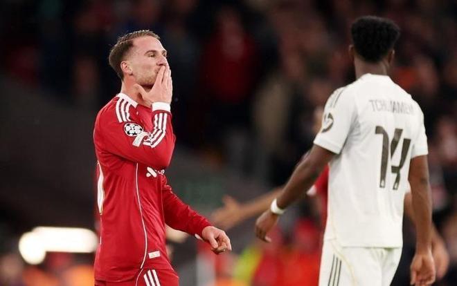 比赛从一开始就进入了利物浦熟悉的快节奏。上半场,利物浦中场索博斯洛伊便成为皇马防线的噩梦。他先是机敏包抄抢点,被库尔图瓦反应神速用脚挡出;随后又一脚势大力沉的远射,再次被这位比利时门神飞身化解。整个上半场,利物浦的进攻一浪高过一浪,而站在他们面前的,仿佛是一堵无法逾越的高墙。