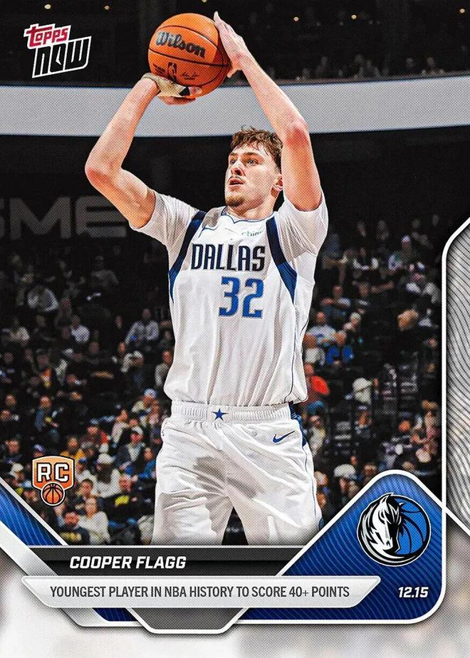 · 单人纪录版本:除了双签卡,Topps Now还同步发行了两人的单人版本卡片,分别记录弗拉格的生涯新高49分(青少年历史纪录)与克努佩尔的生涯新高34分(黄蜂新秀三分纪录)。单人版同样包含实物签字新秀卡的随机插放,发送给幸运的订单。