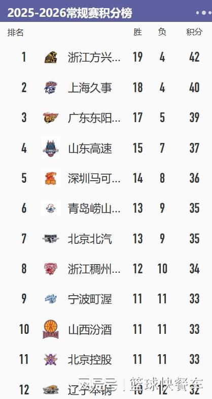 附:CBA积分榜最新排名