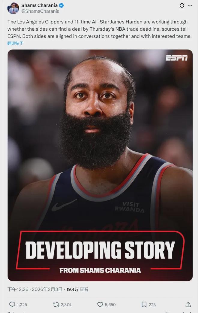 北京时间2月3日中午12点半,据NBA名记Shams报道,詹姆斯-哈登正在申请在交易截止日前离开快船!快船同意哈登的请求,正在跟其他球队谈判,帮哈登寻找下家。这个消息非常突然,过去21场快船17胜4负,已经重回正轨。
